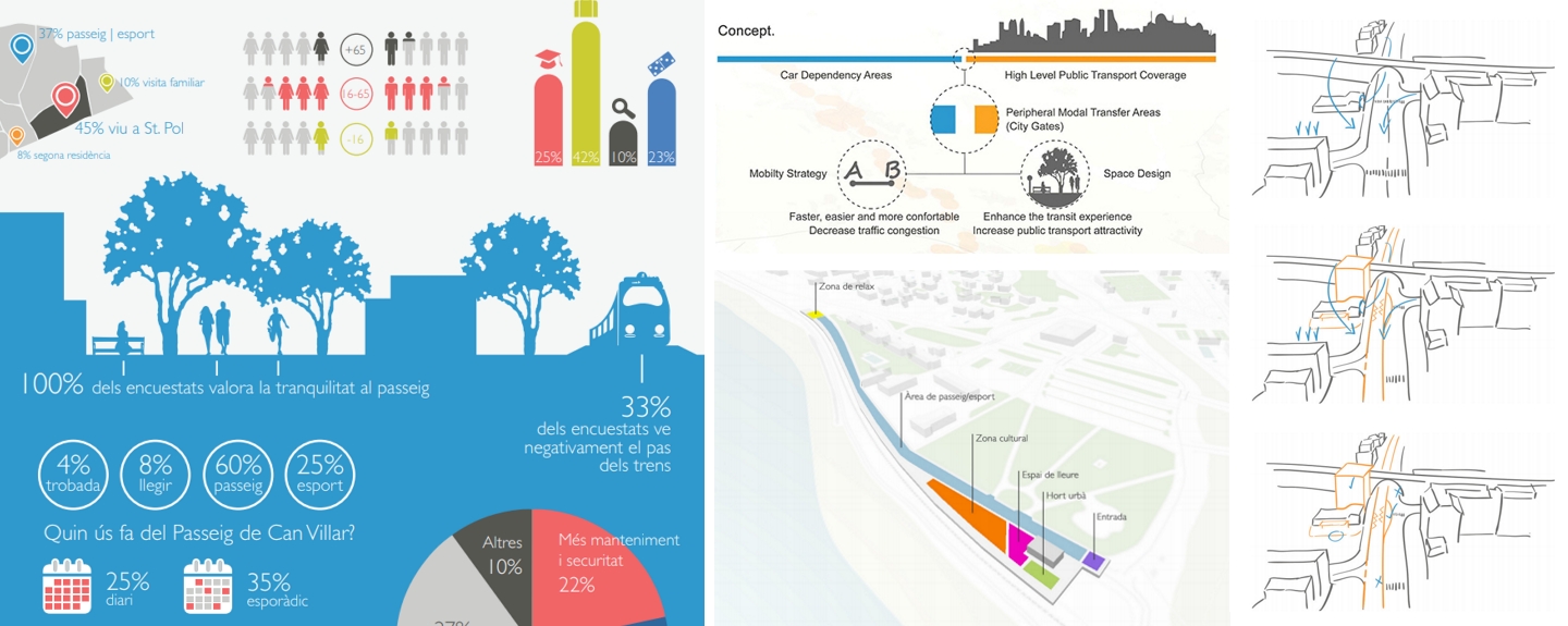 - Sets of multimodal solutions aiming to wider the spatial coverage and attractiveness of hubs, high-capacity transport lines and points of interests (pedestrian permeability, parking dimensioning, accesibility, restructuration of transport network)